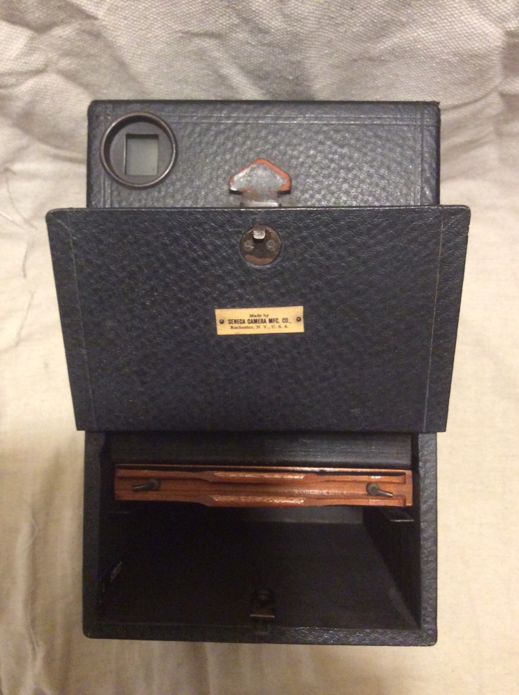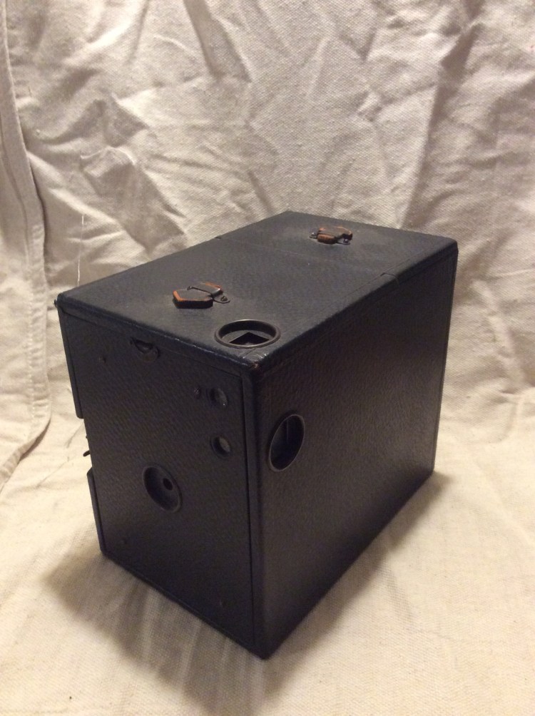 About the size of a shoe box, this vintage camera is in beautiful condition for its age. Built around 1910, this camera held 4×5 inch glass or metal plates. It is simple to use, just a larger version of a brownie. I have loaded her up with two, freshly prepared aluminium plates, and will give it a test run soon.