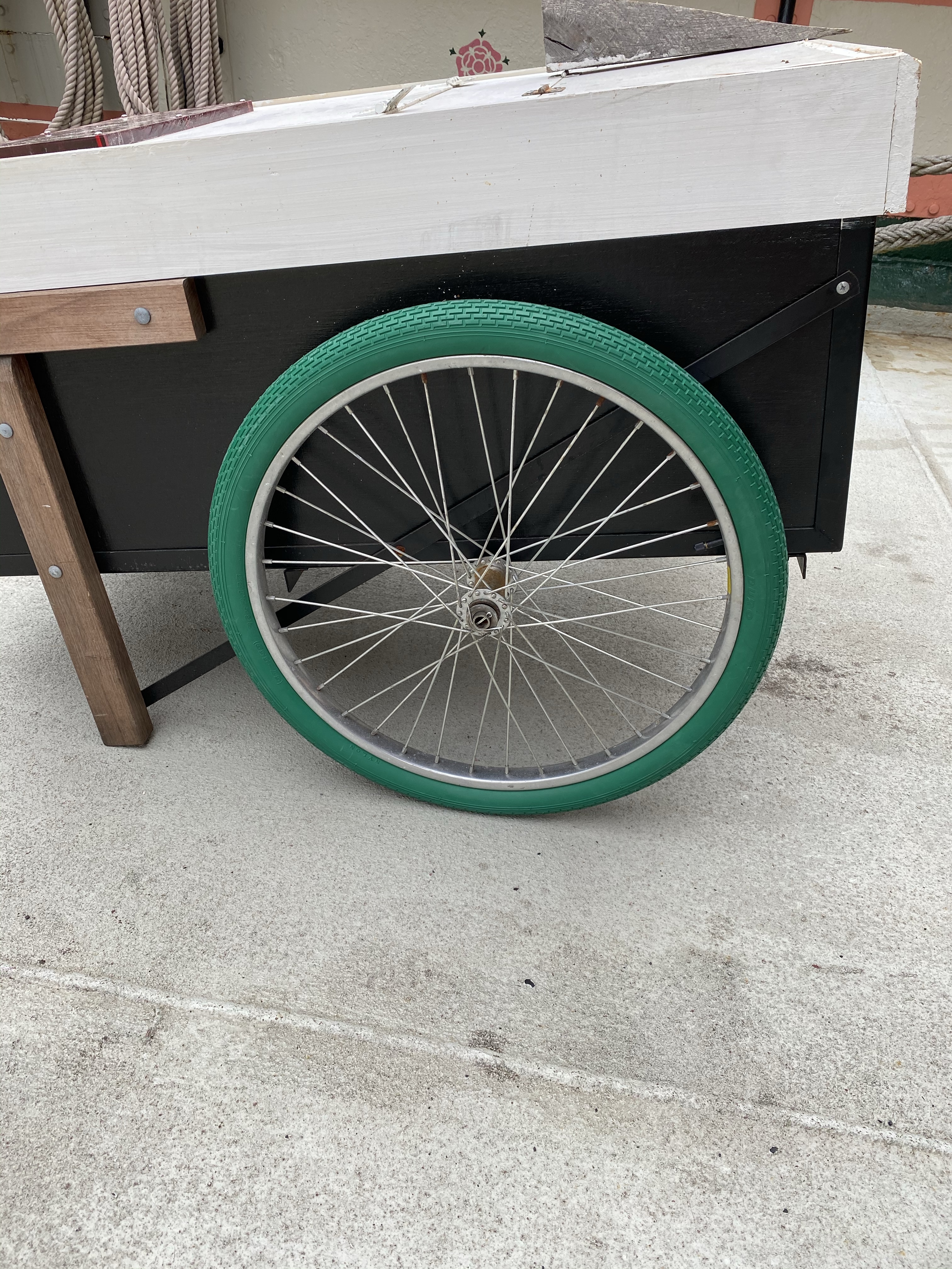I took advantage of the early morning conditions to do some retrofit work on the big darkroom cart. The last time out with it was in early March. This was before things became crazy with social distancing, and masks. That feels like along time ago. Well, on that last run with the cart I had two flat tires, and am just now getting around to solving that problem. The rubber was fairly sun damaged, so new tires were in order. Went with beach cruisers in green. Pretty sharp, I think.