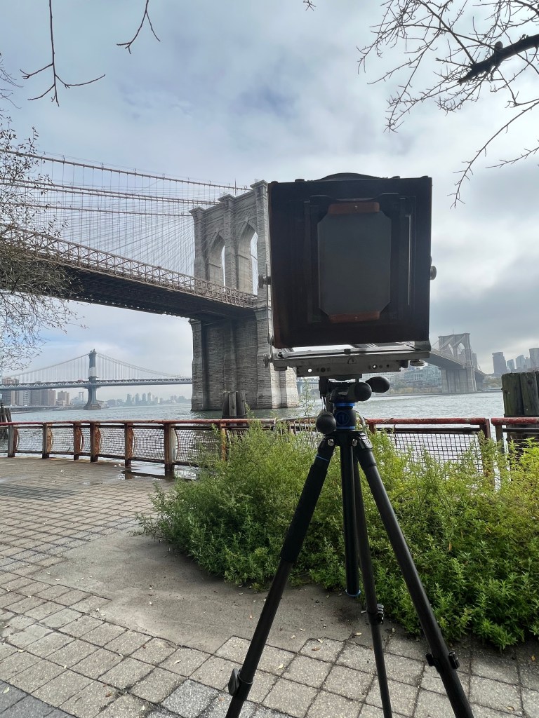 The normal spot where I would set up was off limits due to construction, so I had to relocate, and I am so glad that I did. When I was composing the image on the ground glass screen I noticed that I could also include the Manhattan bridge as well. Can’t wait to capture this on an 8×10 plate.