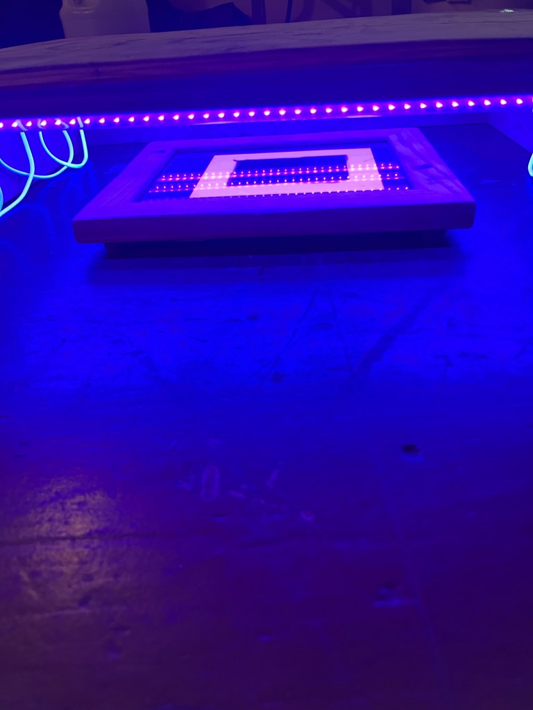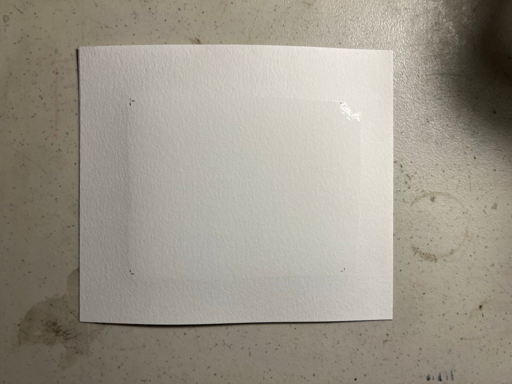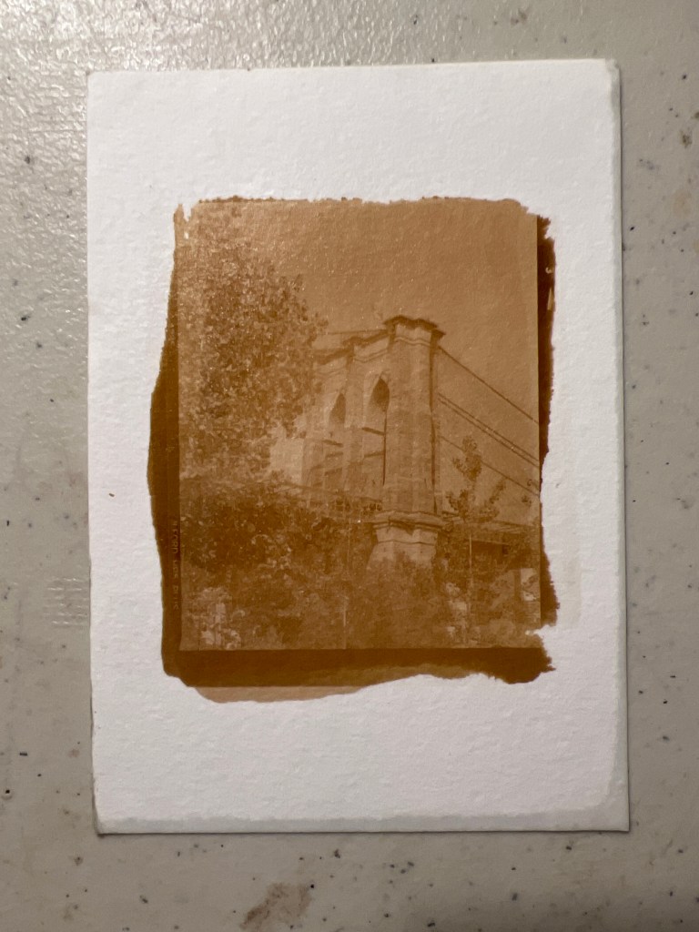 This is a contact printing process, so a suitable sized negative is selected, placed on the paper, and exposed to UV light. On sunny days it can go outside, but today is overcast, and wet. Under my homemade light box then.