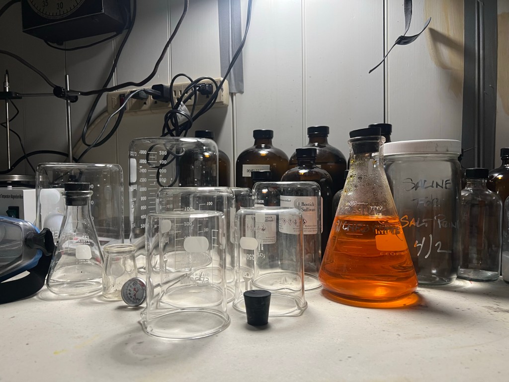 Breakfast dishes done, and put away. Time to find a project. A good day to get in the dark room,, and sort through stuff. Time to toss a few expired chemicals, wash some beakers, flasks, and test tubes, and give everything a good cleaning.