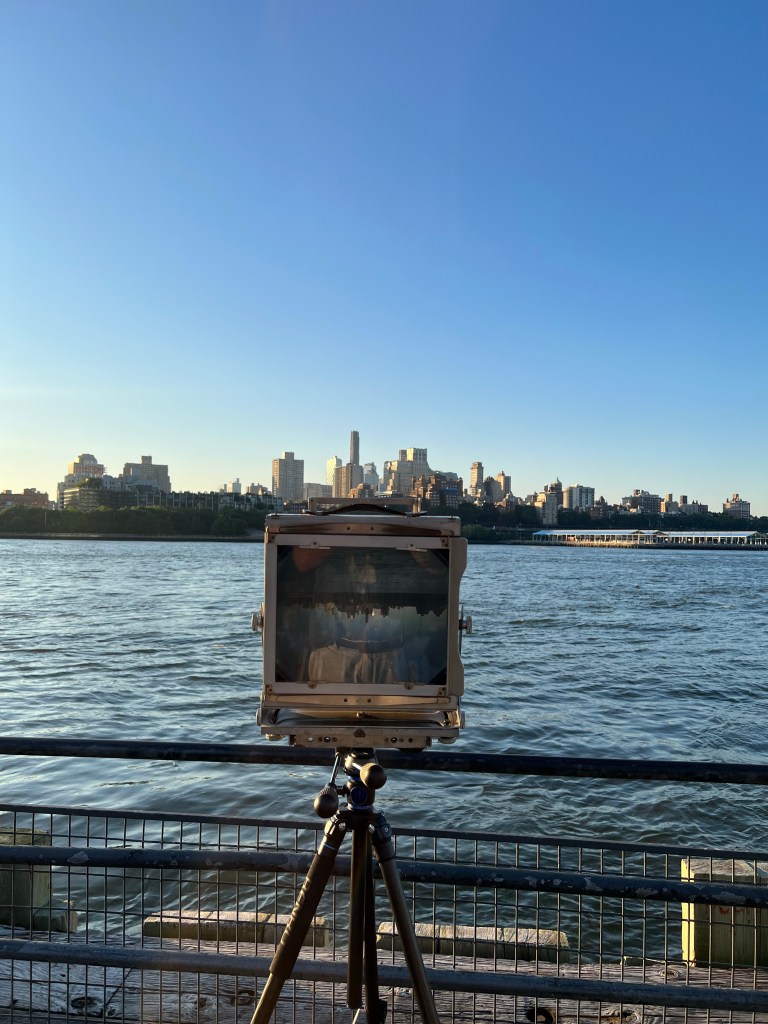 A nice little breeze off the water felt nice. Both the camera on the tripod with it focusing cloth, and the dark box with the cloth hood are at risk of blowing over, so I secured them both before proceeding.