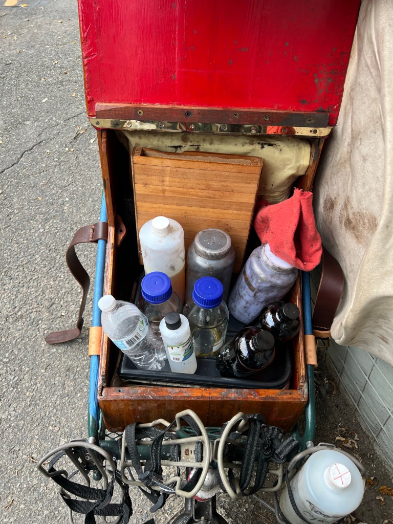 My test plate was spot on for exposure. I next made an ambrotype, seen in the above video, and then a few 8×10 tintypes.